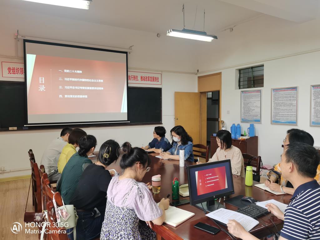 林忠心围绕“学什么”“怎么学”“怎么干”等三个方面,以主要内容、关键词为切入点,结合自身学习体会和思考,带领大家深入学习了党的二十大精神、习近平新时代中国特色社会主义思想、习近平总书记考察安徽重要讲话精神。他指出,要按照主题教育“学思想、强党性、重实践、建新功”的总要求,全面学习领会习近平新时代中国特色社会主义思想的科学体系、核心要义、实践要求,坚持原原本本学,读原著、学原文、悟原理;及时跟进学,真正做到常学常新;融会贯通学,在总结溯源、对照比较中,实现全面透彻的理解把握。要下足功夫往心里走,持续用力往实里走,及时把思想上的所思所悟、所得所获全面落实到学院党建、教学、育人的工作实践当中,不断提高党员教师运用党的创新理论研究新情况、解决新问题的能力和水平。