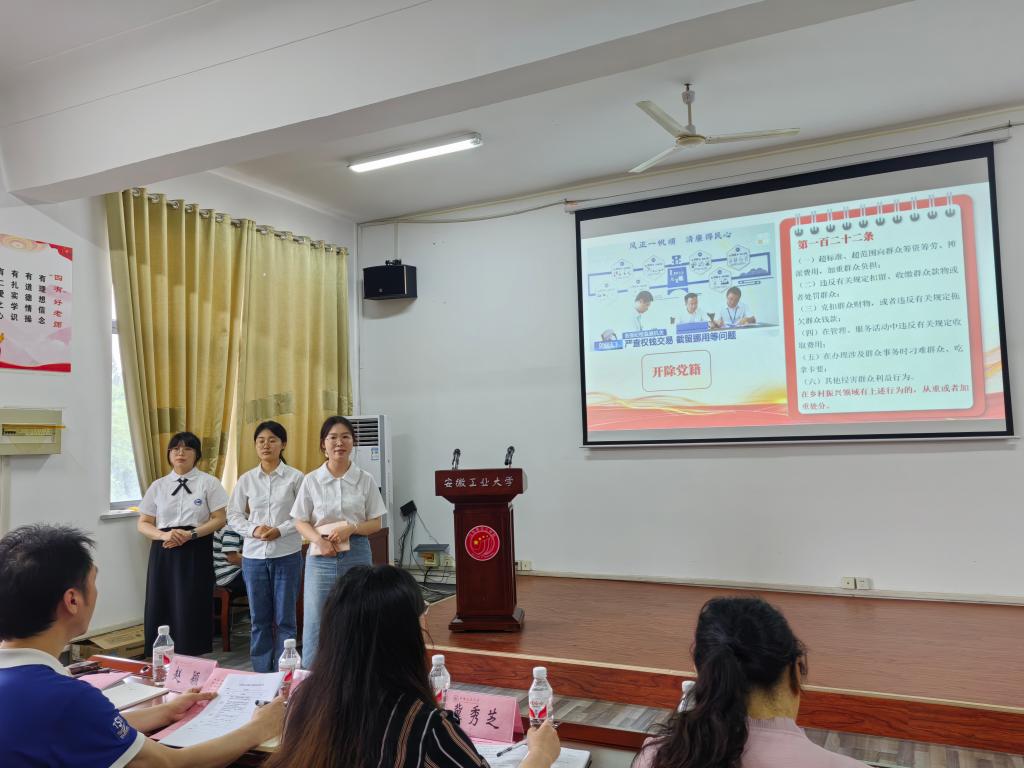 6月26日下午,必赢线路检测3003no1第三届微党课比赛在佳山校区综合楼325报告厅举行。化学与化工学院党委副书记、纪委书记、副院长冀秀芝,管理科学与工程学院党委副书记、纪委书记、副院长赵颖,冶金工程学院党委副书记、纪委书记 、副院长钱春梅,党委组织部(党校)、机关党委副处级组织员许小虎,建筑工程学院建环系教工党支部书记(全国样板党支部)、教授、博士生导师陈德敏担任评委。学院班子成员、党支部书记、支部委员和全体研究生党员参与现场观摩学习,比赛由教工第四党支部支委吴少华主持。