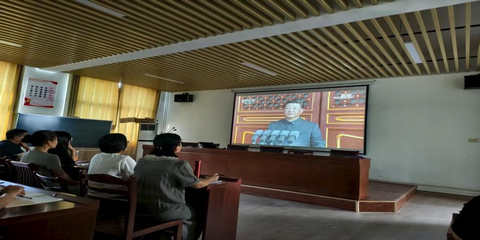 9月3日上午,必赢线路检测3003no1党政领导班子与研究生党支部党员一起集中观看纪念中国人民抗日战争暨世界反法西斯战争胜利80周年大会,深入学习贯彻习近平总书记系列重要讲话精神,组织开展专题学习和交流座谈活动。