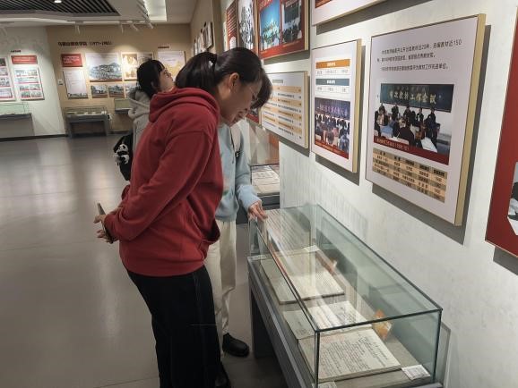 各位党员怀着崇敬的心情,有序地进入校史馆。伴随着校史馆讲解员的精彩解说,同学们沿着“历史长廊”逐步了解了安工大六十五载的发展历程。展板上记录的校史资料与文字图片,诉说着安工大前辈们的奋斗故事;实物展柜里的重要文献资料,全方位显现了学校的创办背景、历史沿革及办学理念;一本本书籍、一张张证书诠释着学校荣光的发展之路。学校自诞生以来始终与党和国家、民族命运紧密相连,在探索中成长、在改革中崛起、在发展中跨越、在创新中前行,深深烙上了“钢铁报国”“投身改革”“强国建设”的时代印记,一代代安工大人也在爱党报国的生动实践中,书写了一部自强不息、埋头苦干、勇于创新的奋斗史。全体党员对学校整个发展历程惊叹不已,也深刻感悟到安工大六十五年办学历史中所凝结的爱党报国的价值追求、育人育才的初心使命和拼搏奉献的精神内涵。
