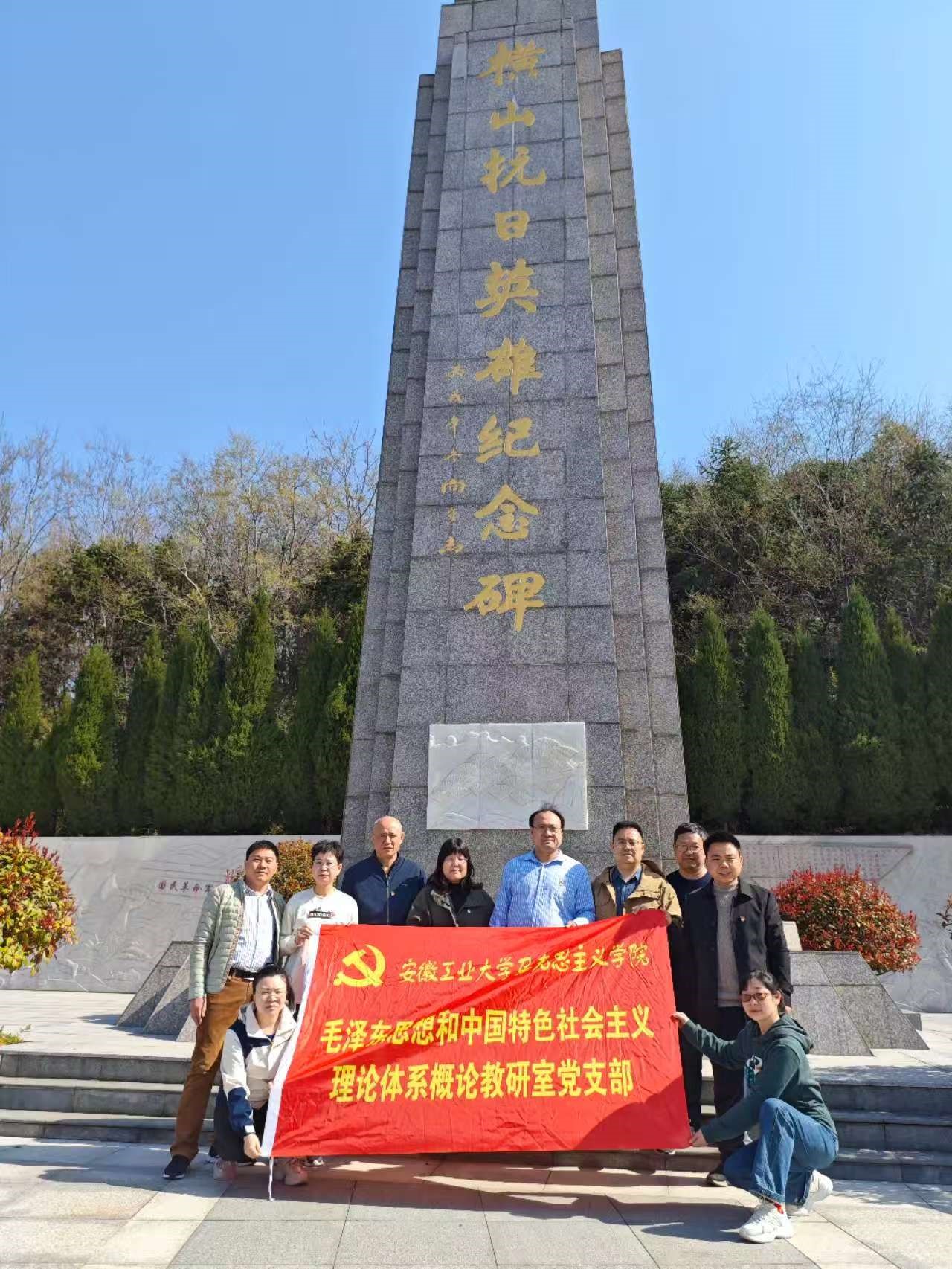 为深化党史学习教育,充分利用大思政资源,赓续革命传统,传承红色基因,激励教师党员凝聚奋进力量,322日,必赢线路检测3003no1毛泽东思想和中国特色社会主义理论体系概论教研室党支部赴马鞍山市博望区横山抗日英雄纪念碑,开展缅怀革命先烈 传承红色基因主题党日活动。