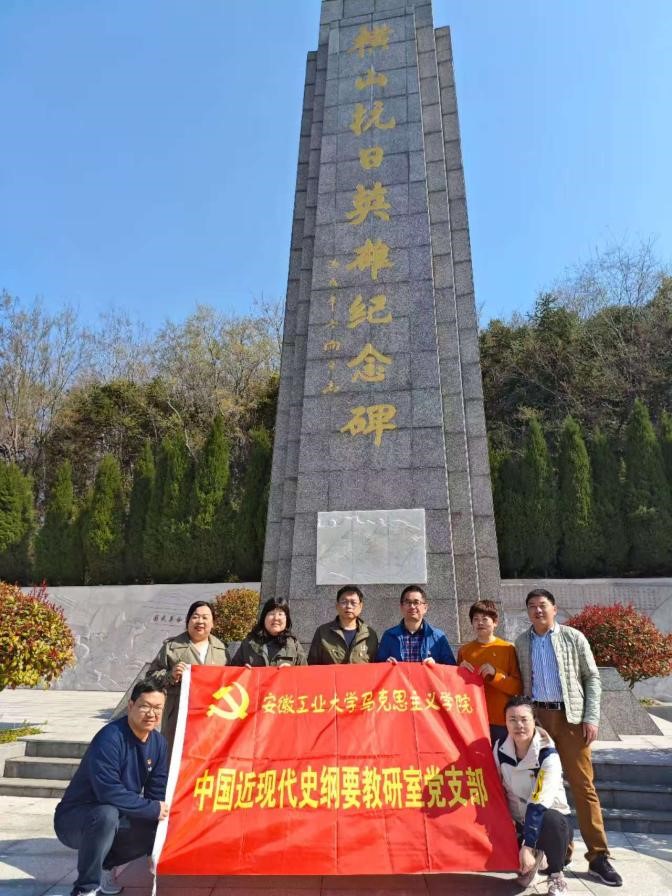 为深化党史学习教育,推动思政课程与红色文化深度融合,3月22日,中国近现代史纲要教研室党支部组织党员前往马鞍山市博望区横山抗日英雄纪念碑,开展“重温入党誓词 赓续红色血脉”主题党日活动。此次活动通过实地研学、现场教学与誓词宣誓相结合的方式,将党的历史与纲要课程教学实践紧密结合,进一步强化党员教师的使命担当与育人职责。