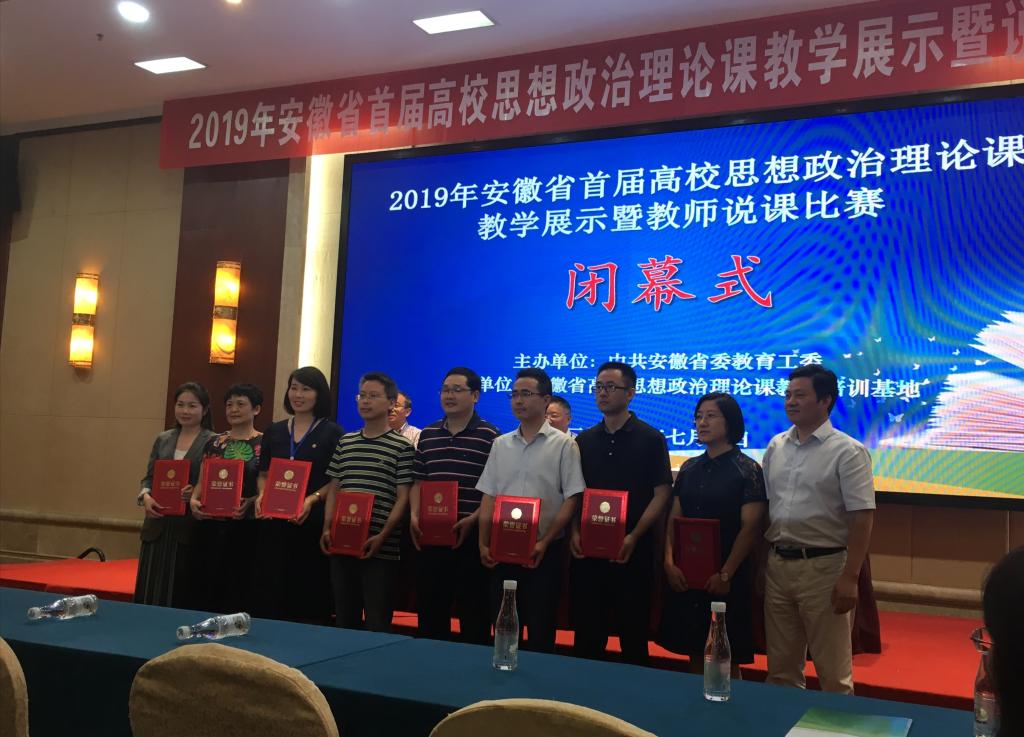 , 2019年安徽省首届高校思想政治理论课教学展示暨说课比赛在安徽师范大学举行,必赢线路检测3003no1院长陈选华教授应邀作为专家担任了此次比赛的评委。经过激烈角逐,我校必赢线路检测3003no1的陆春晖老师、汪宏老师从来自全省近70名选手中脱颖而出,分别荣获一等奖和二等奖。