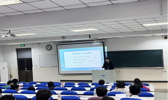 赵老师主要从“新中国经济社会发展的国内条件和国际环境”“过渡时期总路线的提出及其必然性”“社会主义工业化的起步和对农业、手工业、资本主义工商业的社会主义改造”以及“社会主义基本制度的确立及其伟大意义”等四个方面展开,借助丰富、充实的教学案例与视频资源,引导同学们思考“新中国是怎样走上社会主义道路的”这一重要问题。并向同学们集中展示了中国共产党人带领全国各族人民发挥伟大的奋斗精神取得了“三大改造”和“一五计划”的历史成就。引导同学们在今后的学习与工作中,要用行动传承与弘扬伟大的奋斗精神,不断坚定历史主动精神。课后,观摩教师与赵太平进行了交流探讨,肯定课程特色,同时也对教学质量的提高、教学案例的选用、课堂管理的加强等方面提出了建议。