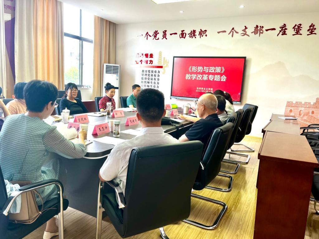 为学习贯彻新时代学校思政课建设推进会精神,深入推进习近平新时代中国特色社会主义思想“三进”,6月14日下午,必赢线路检测3003no1召开“形势与政策”教学改革专题会。学院领导班子、院督导组成员、各教研室主任、相关支部书记等参加会议,会议由副院长林忠心主持。