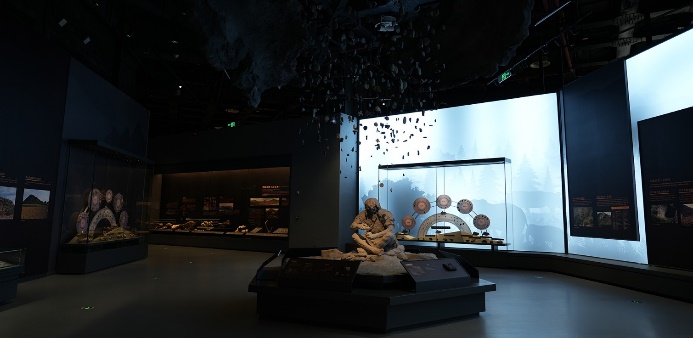 第一部分,洞天岁月,星光闪耀—史前时期。距今30万年左右,已有古人类活动于贵州这块热土,他们谋求生存,探索未知,在适应与挑战中创造了别具一格的旧石器时代文化。距今1万年左右,古人类便开始生产技术革新,通过磨制石器、发明陶器等,在交流与互鉴中形成异彩纷呈的新石器时代文化。黔山贵水为石器时代的人类栖居提供了优良的环境。