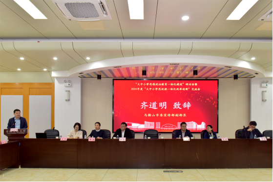 齐道明在致辞中对与会领导专家的到来表示诚挚欢迎,他热情洋溢地为大家介绍了马鞍山这座古今辉映的文明之城、左右逢源的开放之城、刚柔并济的产业之城、山水相间的生态之城,为开展思想政治教育工作孕育了丰富的资源。他指出近年来,马鞍山大中小学思想政治教育一体化共同体建设常态化开展思政课同课异构、观摩交流等活动,坚持“三个相结合”,全市“大思政课”育人体系不断健全,大思政工作格局也日臻完善。其中第一小组单位必赢线路检测3003联合带领15所大中小学开展一体化建设,活动丰富、成效显著。希望通过这次研讨交流,凝聚共识,为今后更加有效推动一体化建设积累经验。