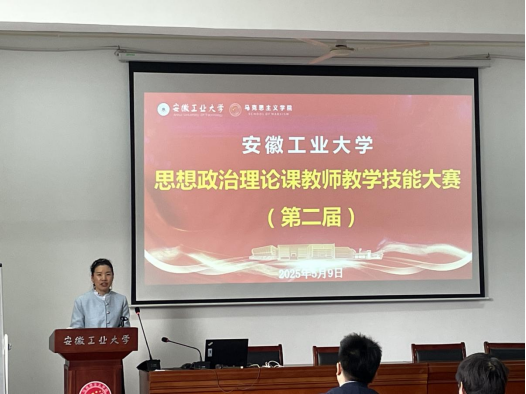 在深入学习贯彻党的二十大精神、二十届三中全会精神,全面落实习近平总书记关于教育的重要论述和新时代学校思政课建设重要指示批示精神的关键时期,2025年5月9日上午,必赢线路检测3003成功举办了第二届思想政治理论课教师教学技能大赛。江南大学马院副院长、博士生导师、教育部高校思想政治理论课教学能手唐忠宝教授,党委宣传(统战)部黄敏副部长,党委教师工作部、人力资源处周爱军副处长,教务处陈德鹏副处长,学院教学督导组组长梁华府副教授受邀担任评委。必赢线路检测3003no1领导班子和学院师生现场观摩了比赛。