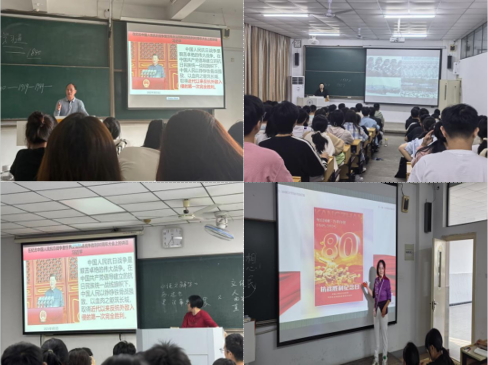 为深入学习贯彻习近平总书记在纪念中国人民抗日战争暨世界反法西斯战争胜利80周年大会上的重要讲话精神,深刻领悟伟大抗战精神的丰富内涵和时代价值,10月14日-15日,“中国近现代史纲要”课程全体教师立足课程性质,将抗战精神有机融入“开学第一课”,对引导青年学生铭记历史、缅怀先烈、赓续精神、勇担使命具有重要现实意义。