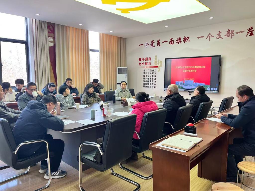 为系统总结 2025 年度教学工作,推进思政课建设内涵式建设,1月12日,我院教研室主任述职评议考核会议在学院324会议室召开。学院领导、院督导组成员、各教研室主任参加。会议由院长郑洁主持。