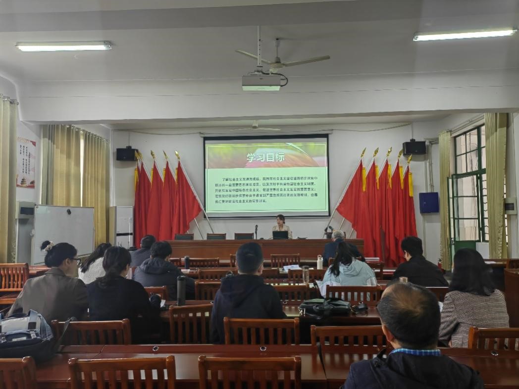 为深入学习贯彻党的二十大精神,扎实推进学习贯彻习近平新时代中国特色社会主义思想主题教育,进一步增强《毛泽东思想和中国特色社会主义理论体系概论》课程教学的科学性、针对性、时效性,尽快提高新进教师教学水平与教学能力,2023年5月11日,“概论”教研室组织全体授课教师于学院325报告厅,开展青年教师教学展示与交流集体备课活动。副院长林忠心出席,会议由教研室主任阮超群教授主持。