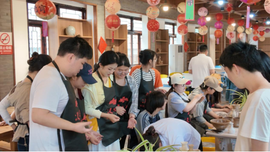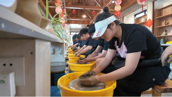 随后,同学们还来到陶艺馆,亲身体验陶艺制作。在专业老师的指导下,同学们充分发挥自己的想象力和创造力,将手中的陶土塑造成各种形状,感受着古老陶艺的独特魅力,体会凌家滩先民们的智慧与创造。