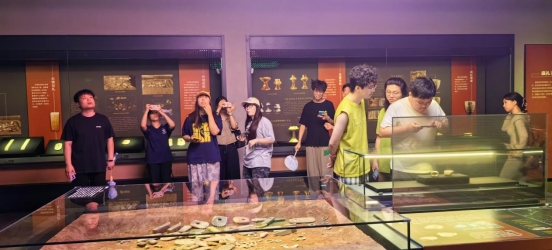 5月20日,微风轻拂,60余名视觉传达设计专业学生在老师的带领下,来到凌家滩国家考古遗址公园,开启了一场穿越时空的文化探寻之旅。同学们首先观看了凌家滩文化宣传片。凌家滩遗址作为长江下游巢湖流域迄今发现面积最大、保存最完整的新石器时代聚落遗址,其悠久的历史和灿烂的文化让大家心驰神往。那神秘的祭祀场景、精美的玉器文物、独特的社会结构,仿佛一幅波澜壮阔的历史画卷在同学们眼前徐徐展开,大家被凌家滩先民的智慧和创造力所深深震撼,对这片古老的土地充满了向往。