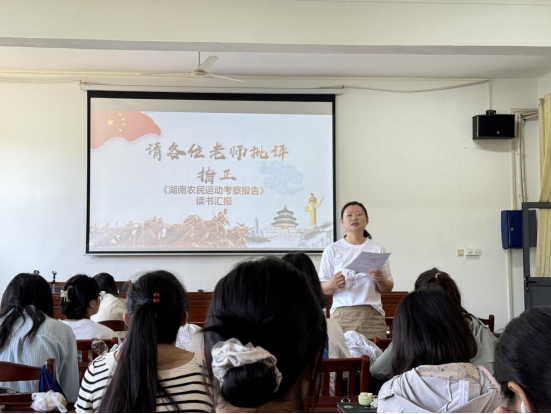 本次读书汇报交流会分三组进行,共9位同学围绕《毛泽东选集》中的不同篇目结合自身读书感悟分享了读书心得体会。第一组的汪琴、熊丹、张文清、潘慧同学汇报的篇目是《井冈山的斗争》,三位同学从写作背景、主要内容、个人感悟三个方面展开汇报,以湘赣边界的割据和八月失败事件为切入点,针对割据地区的“现势”分析,提炼出可供“现世”参考的历史经验。该小组同学坚持问题导向,在对“土地问题”“政权问题”“党的组织问题”“革命性质问题”“军事和割据地区问题”等具体问题的深度剖析中升华出对新时代“土地政策与生产力”“党的组织建设”“党的制度建设”“党的思想建设”“党的军事建设”等方面的现实启示,从现实与未来变化点、问题与答案的连接点中让经典著作的真谛深入新时代的社会实践。