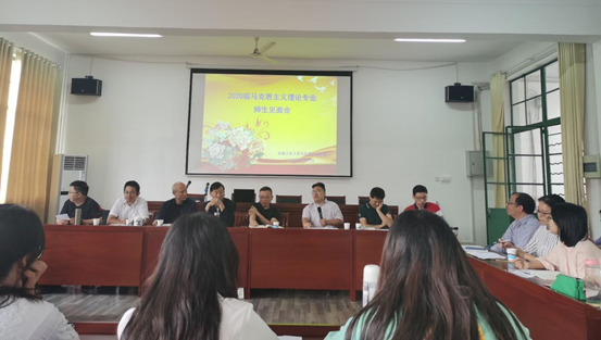 师生见面会首先是自我介绍。2020级23位研究生依次做了自我介绍,同学们对个人的兴趣爱好以及未来研究生生活的规划和目标,纷纷发表了各自的想法和志向。其次是硕士生导师代表发言。各位导师都对学生的生活、学习和论文写作等方面提出了自己的建议和期望,强调在学习中找到自己的兴趣和研究方向,建立学科自信。例如曹大文教授希望同学们学会交流,努力奋斗,多把精力放在学术研究上面,学会坚持。陈选华教授提出“净,思,勤”三字寄语,希望同学们自觉抵制网络诱惑,专注学术。