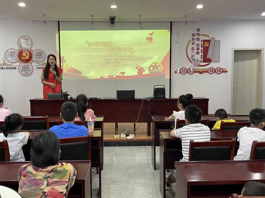 从火炮火箭,从炮弹到导弹,从飞机到飞船……见证了我国国防事业的快速发展。”宣讲团成员闻艳以鲜活的个人事例、多彩纪实的图片、生动干练的语言,为孩子们介绍了什么是国防、国防的重要性、现代化国防和军队建设、青少年与国防的关系,引导孩子们了解国防信息、掌握国防知识,教育他们要时刻增强忧患意识,牢固树立国防观念,努力学习,为祖国的和平与发展贡献自己的力量。通过科普国防知识,孩子们深切感受到我国现代国防的巨大变化和祖国强大的军事力量,更加坚定了对民族复兴和强国建设的自信