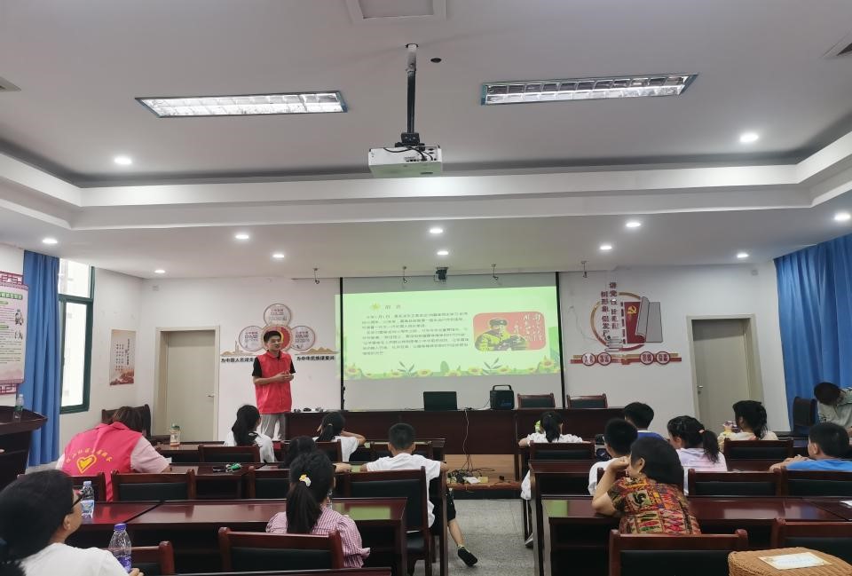 为学习宣传贯彻党的二十大精神,推动学习贯彻习近平新时代中国特色社会主义思想主题教育深入群众、深入基层,培养听党话、跟党走的新时代好少年,7月26日,必赢线路检测3003no1研究生宣讲团赴花山区湖东路街道佳山社区开展主题宣讲活动,为暑期夏令营的孩子们带来了一堂生动有趣的红色教育小课堂。