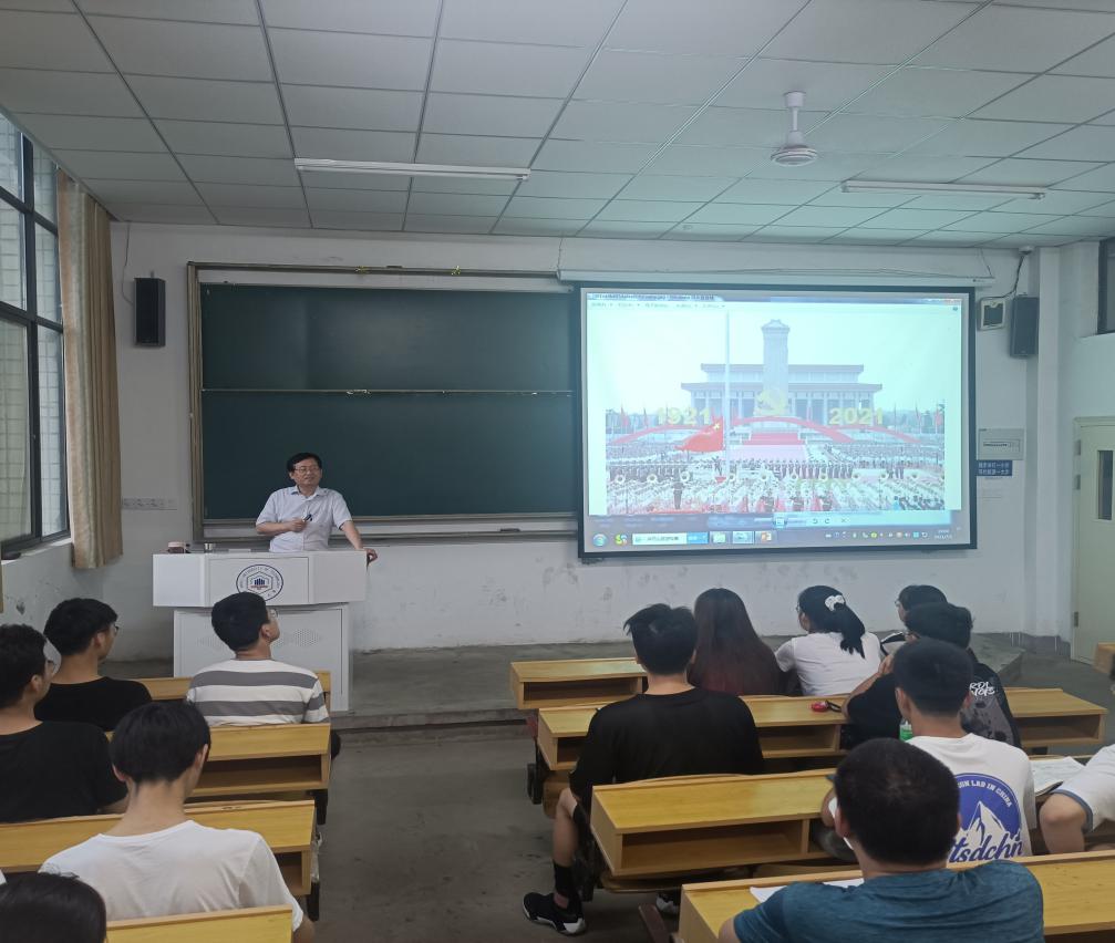 7月1日晚,校党委常委、副校长刘明在佳山校区教一106教室为电气学院测控技术与仪器专业2020级学生开展形势与政策课教育,课程专题为“中国共产党建党百年来外事工作的光辉历程”。