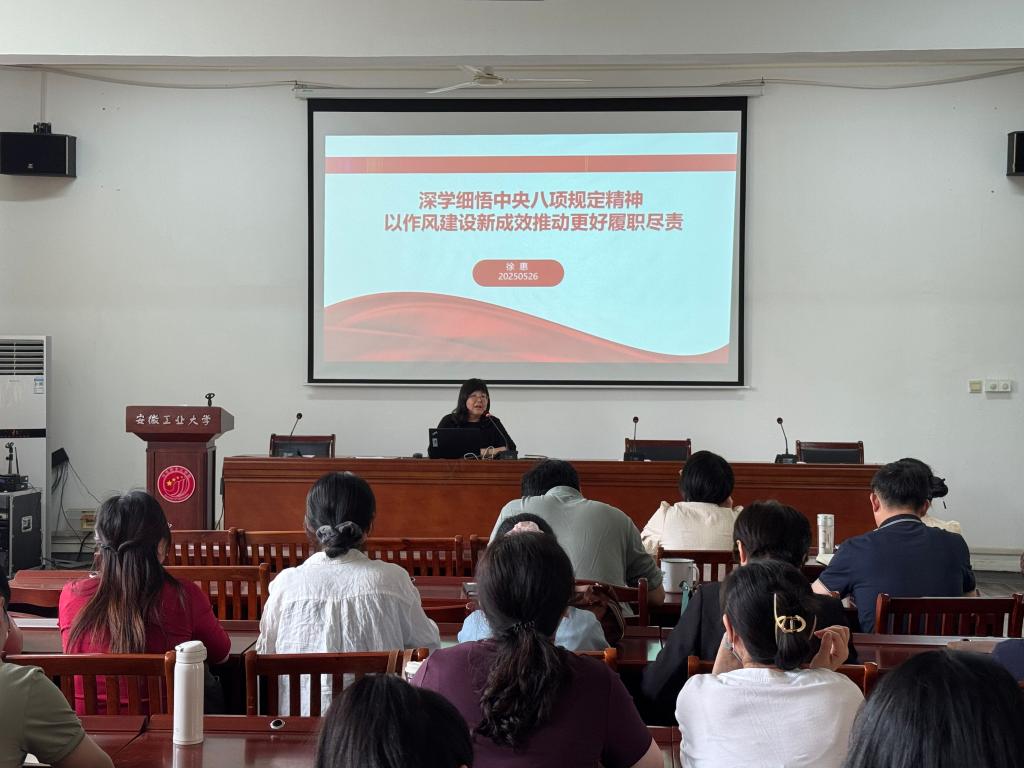 5月26日下午,必赢线路检测3003no1在综合楼325报告厅开展深入贯彻中央八项规定精神学习教育专题党课。学院党委书记徐惠以《深学细悟中央八项规定精神,以作风建设新成效推动更好履职尽责》为主题,为学院全体教职工讲授专题党课。