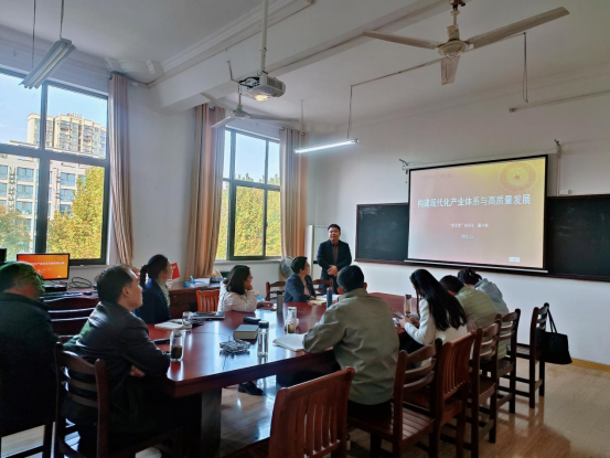 本次会议聚焦党的二十届四中全会精神融入课程教学的实践路径展开研讨。会上,戴少刚老师以“构建现代化产业体系与高质量发展” 主题,从深刻内涵、生成逻辑、实践路径三个维度,直观呈现了全会精神与课程章节内容的有机融合范式。与会教师围绕教学展示展开深入交流,针对精神融入的重点方向、实施难点、具体方法及案例选取等核心问题各抒己见,提出一系列建设性意见,现场研讨氛围热烈浓厚。