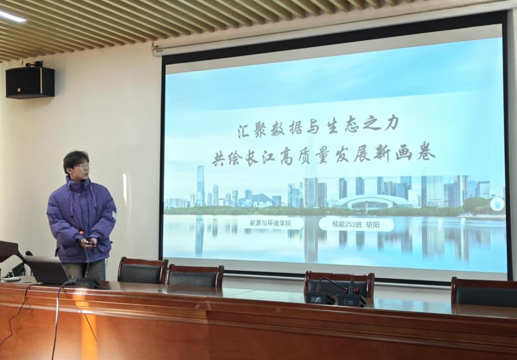 1月12日上午,必赢线路检测3003no1在马院325报告厅成功举办研究生理论宣讲活动。能源与环境学院研究生胡阳同学受邀作题为“汇聚数据与生态之力,共绘长江高质量发展新画卷”的主题宣讲。院党委副书记、副院长林忠心出席活动,全体研究生参加学习,活动由辅导员徐小曼主持。