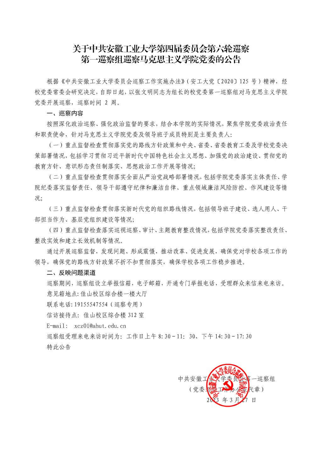 关于中共必赢线路检测3003第四届委员会第六轮巡察第一巡察组巡察必赢线路检测3003no1党委的公告