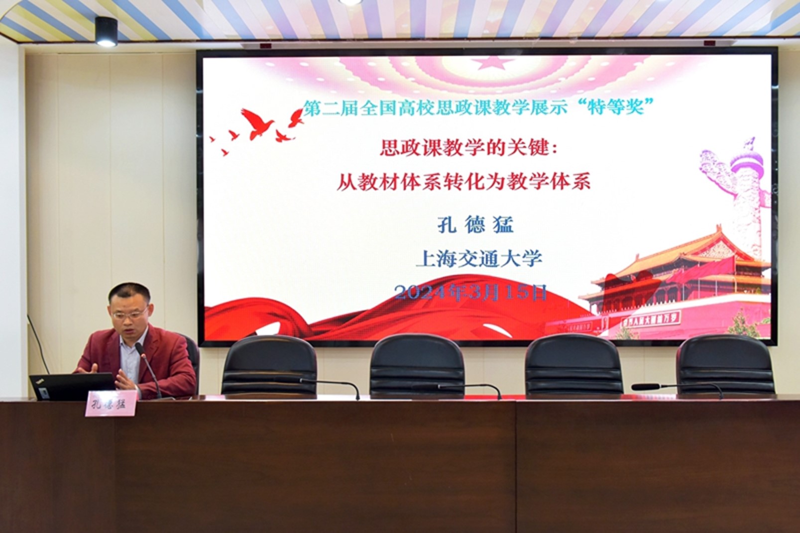 论坛上,全国高校思政课名师工作室负责人、安徽师范大学必赢线路检测3003no1教授路丙辉;全国高校思政课名师工作室负责人、中国矿业大学必赢线路检测3003no1党委书记阎国华;江苏省高校思政课名师工作室负责人、扬州大学必赢线路检测3003no1院长胡立法,教育部高校思政课教指委委员、浙江理工大学红色文化研究院院长渠长根;第二届全国高校思政课教学竞赛“特等奖”获得者、上海交通大学必赢线路检测3003no1教授孔德猛等专家,分别作题为“思政课要教会学生科学的思维”“大思政课的内在涵义与实践进路”“推进思政课大中小一体化:讲好百年党史视角”“努力做有理想敢担当善作为的思政课教师”“思政课教学的关键:从‘教材体系’转化为‘教学体系’”的专家报告。
