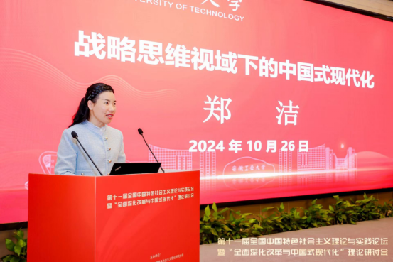 我院院长郑洁教授、金雅老师和姚礼巧老师受邀参加本次研讨会。郑洁院长应邀作了题为《战略思维视域下的中国式现代化》的主题报告。此次论坛旨在深入学习贯彻党的二十届三中全会精神,深入研究阐释“全面深化改革与中国式现代化”的科学内涵,为进一步全面深化改革、推进中国式现代化贡献智慧和力量。