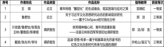 近日,由安徽省教育厅主办、合肥工业大学承办的第七届“新时代·新思想·新青年”安徽省大学生学习马克思主义理论成果大赛评审结果揭晓。本届大赛共收到来自全省80所高校的309项参赛作品,经过严格的形式审查、作品查重及专家评审,最终评选出一等奖38项、二等奖74项、三等奖111项。我院共有4项作品获奖,取得了一等奖2项、三等奖2项的优异成绩,展现了学院师生扎实的理论功底和出色的创新能力。
