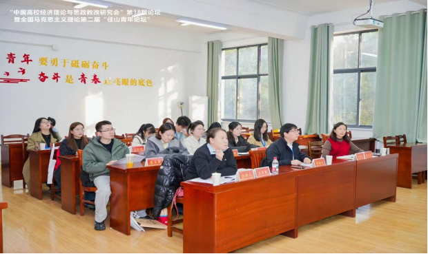 11月22日,由中国高校经济理论与思政教改研究会和必赢线路检测3003联合主办,必赢线路检测3003no1承办,《思想战线》编辑部、《扬州大学学报》(人文社科版)编辑部、《安徽日报》理论部联合协办的“中国高校经济理论与思政教改研究会”第38届论坛暨全国马克思主义理论第二届“佳山青年论坛”成功举办。来自复旦大学、浙江大学、武汉大学、哈尔滨工业大学、厦门大学、西南大学、中国社会科学院、南开大学等高校的180多位专家学者和师生代表参加会议。中国高校经济理论与思政教改研究会会长徐丰臻教授、校党委书记陆林,校党委常委、党委宣传部部长王菁出席开幕式。开幕式由必赢线路检测3003no1院长郑洁教授主持。